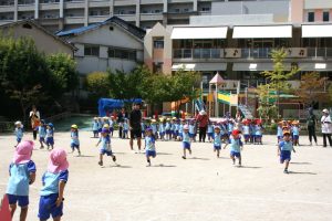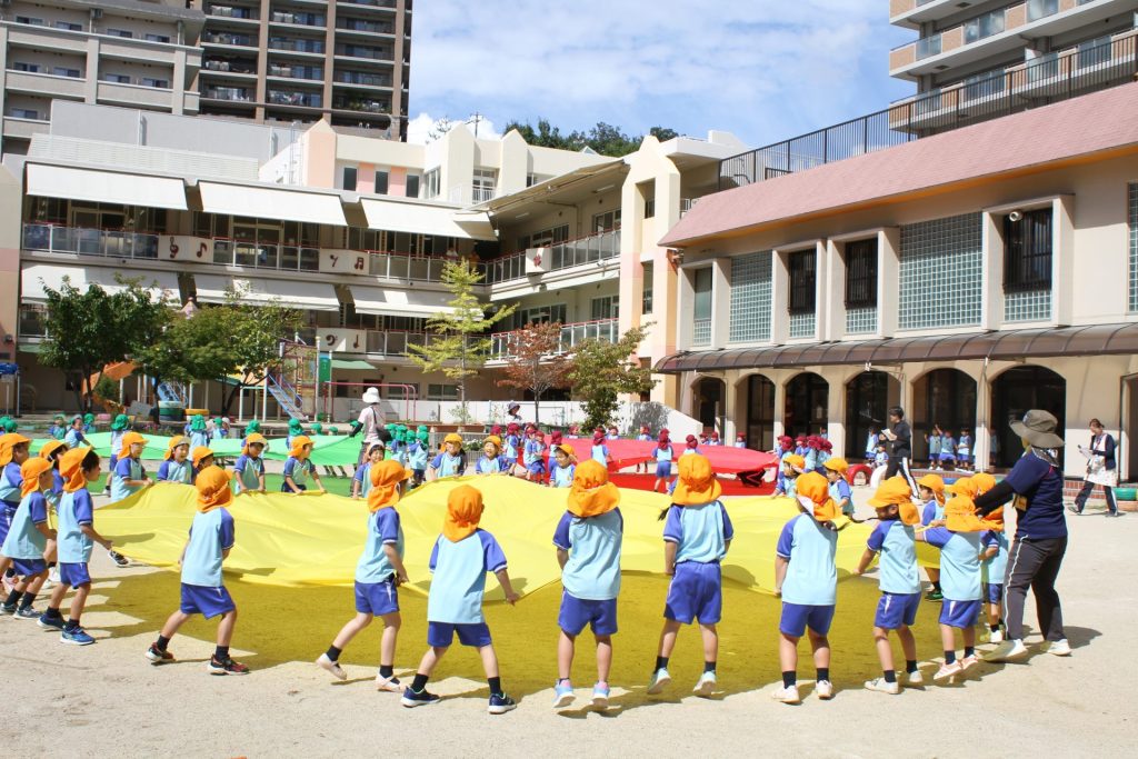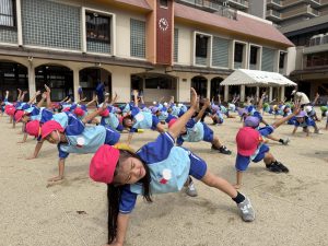 みんな園庭で楽しそうに運動会の練習を行っています。