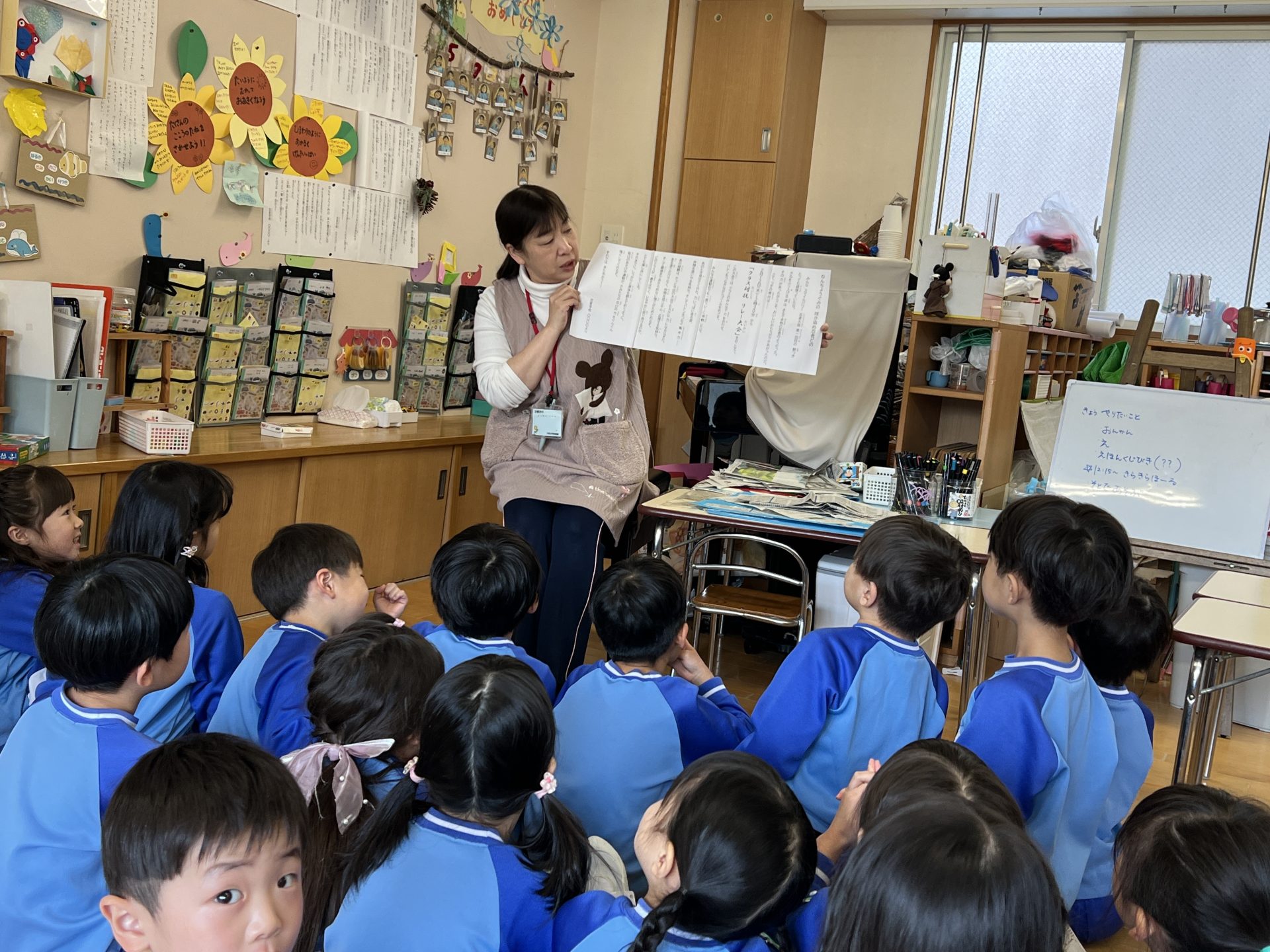 年長組のお部屋に巻物が届きました。