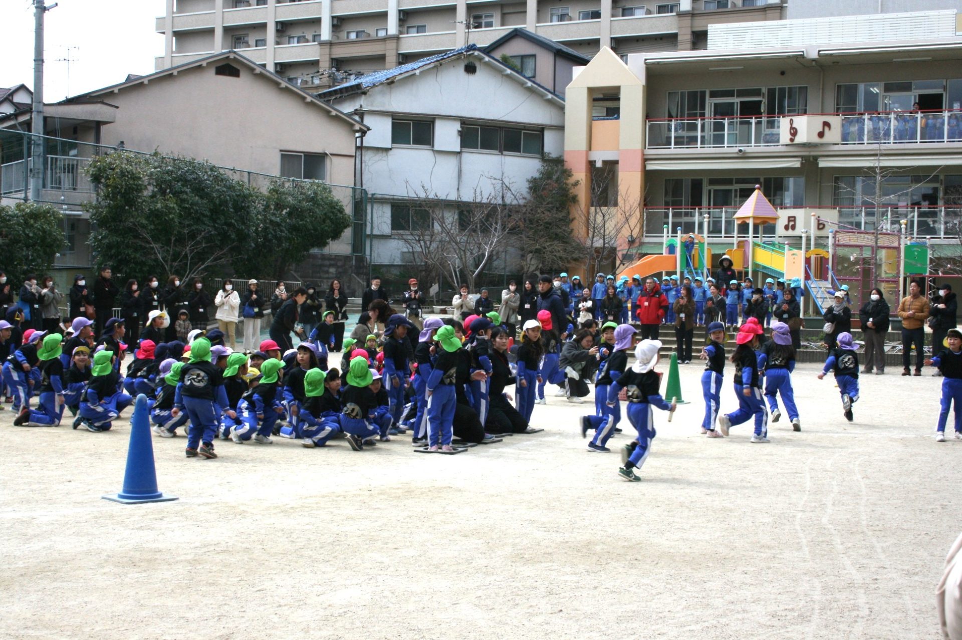 金曜日、年長組が卒園前最後の忍者修行として、リレー大会を行いました。