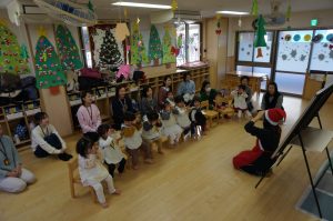 サンタさんの手遊びやダンスを保護者と一緒に楽しみました。