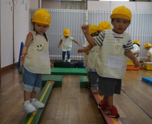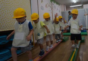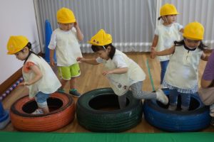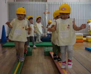 サーキット遊びでは、様々な動きを順番に行うことで、走る、跳ぶ、バランスをとるといった基本的な運動能力が自然と身につきます。積極的に体を動かし、楽しく運動していました。