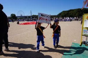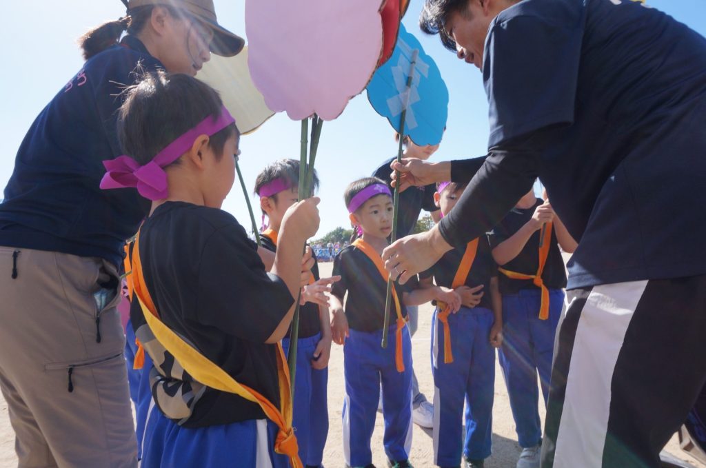 また今年度は年長組さんが、アナウンスや競技の道具出し準備、看板を持って次の競技の紹介をしてくれました。