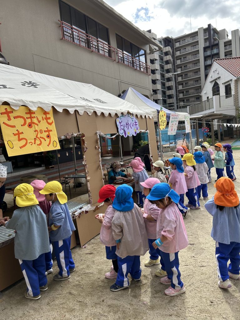 先日幼稚園のちびっこ農園で育てていたサツマイモを収穫した年少組のみんな。