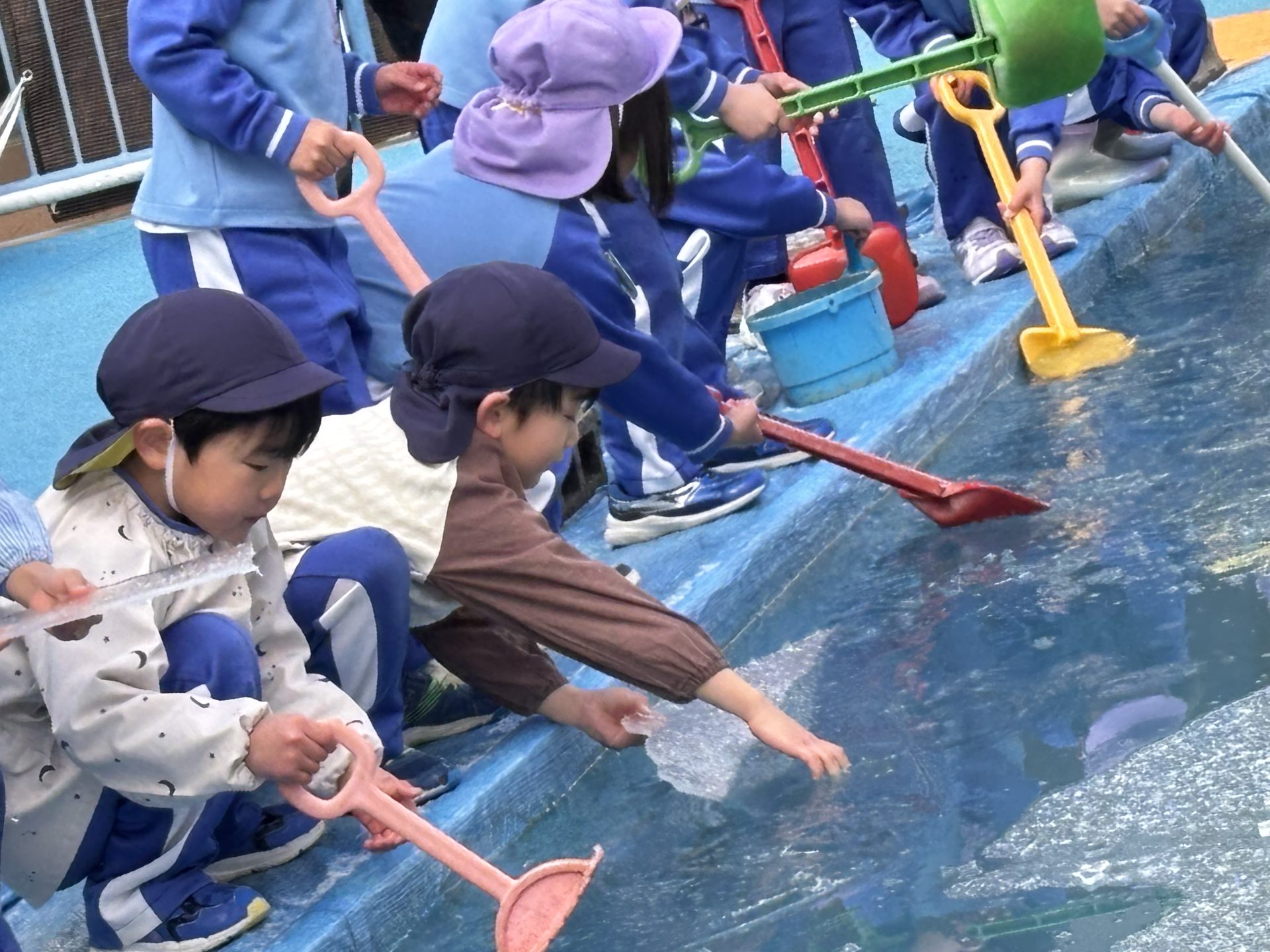 プールの水もこの寒さで凍っていました。