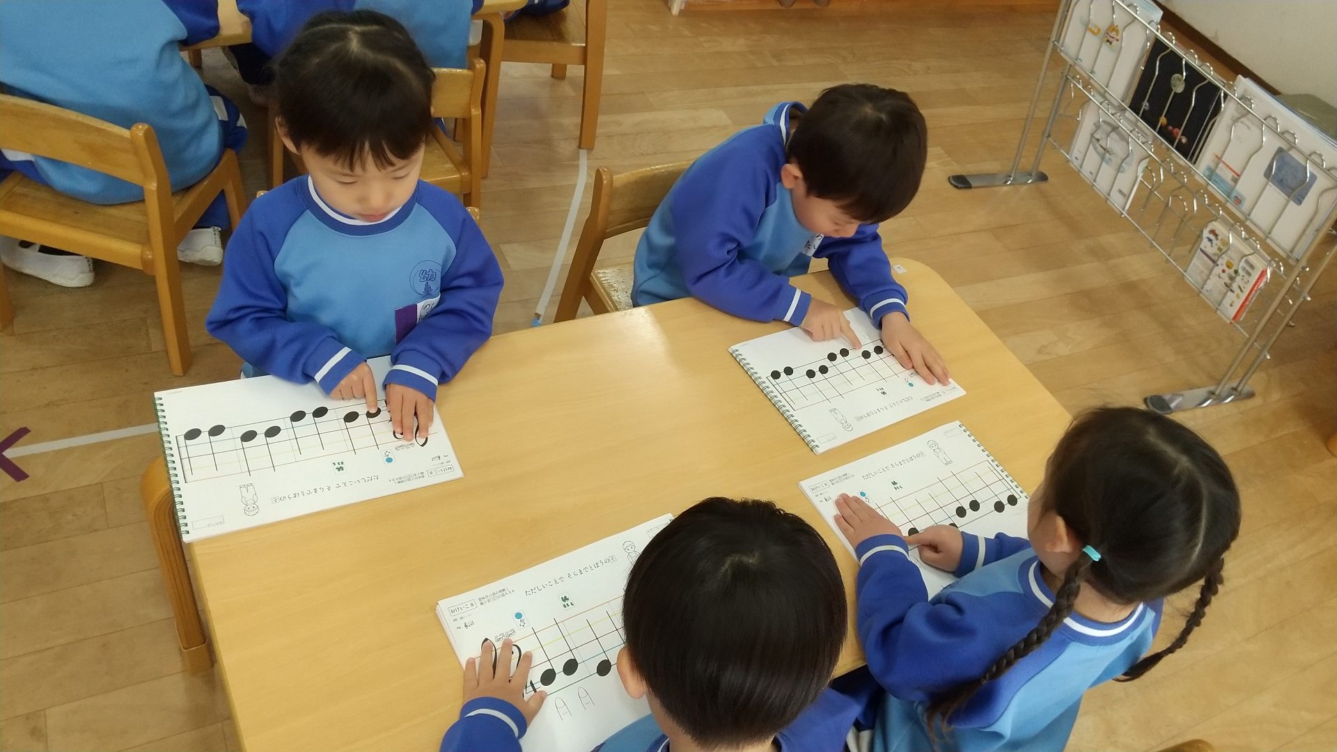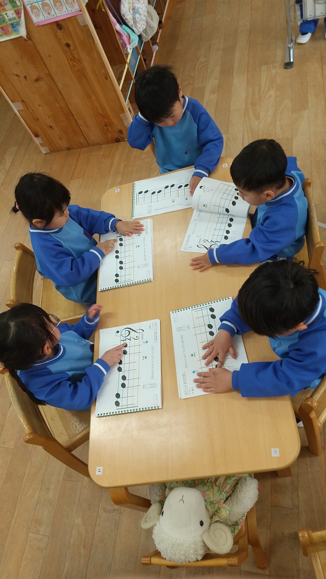 めいちゃん(ぬいぐるみ)も『おんぷをよもう』を一緒にやっていますね!
