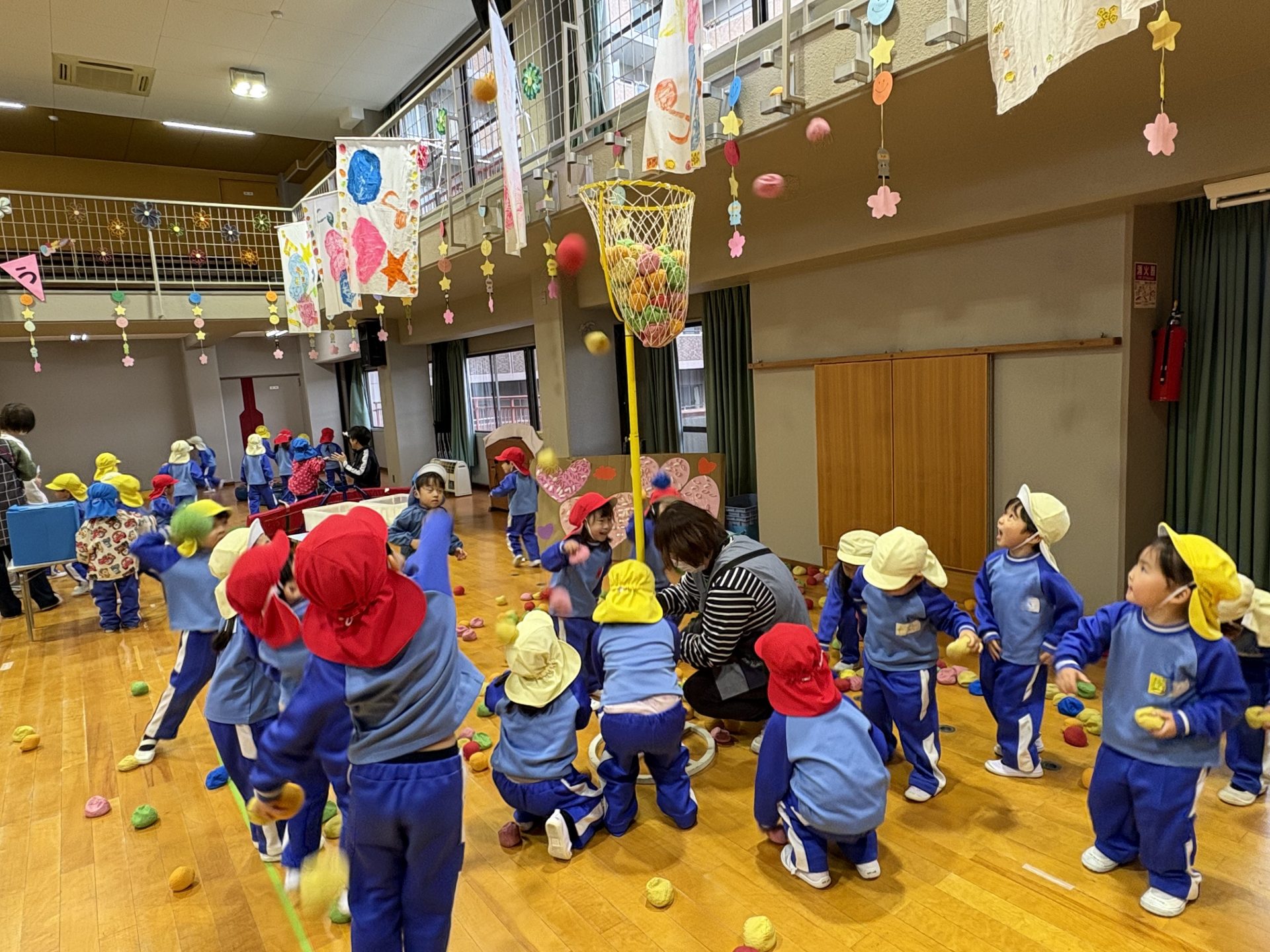 体育館で、楽しい遊びが繰り広げられ・・。